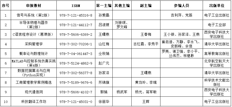 根据《关于开展2026年省级规划教材申报工作的通知》,经教师申报、学院审核、学校组织专家评审、校教学委员会审议,拟推荐《信号与系统(第2版)》等10部教材参评省级规划教材评选,现将推荐名单公示如下:
